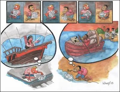 - ’Caiga en la realidad amigo. Esos paises se hacen la guerra desde hace 5 mil años! Y para decirle la verdad, soy bueno, pero no tanto como para eso. ¡Mejor pida otra cosa!’