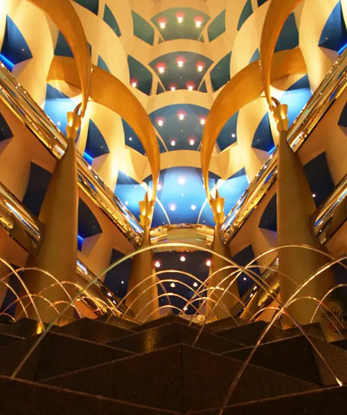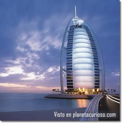 El 'Burj al Arab' es el hotel más lujoso del mundo. Situado al sur de Dubai, es el único lugar que ostenta el mérito de ser considerado un '7 estrellas'. Pero además de ser el más lujoso, es también el más alto del mundo, en forma de vela, cuenta con unas vistas únicas sobre el desierto.