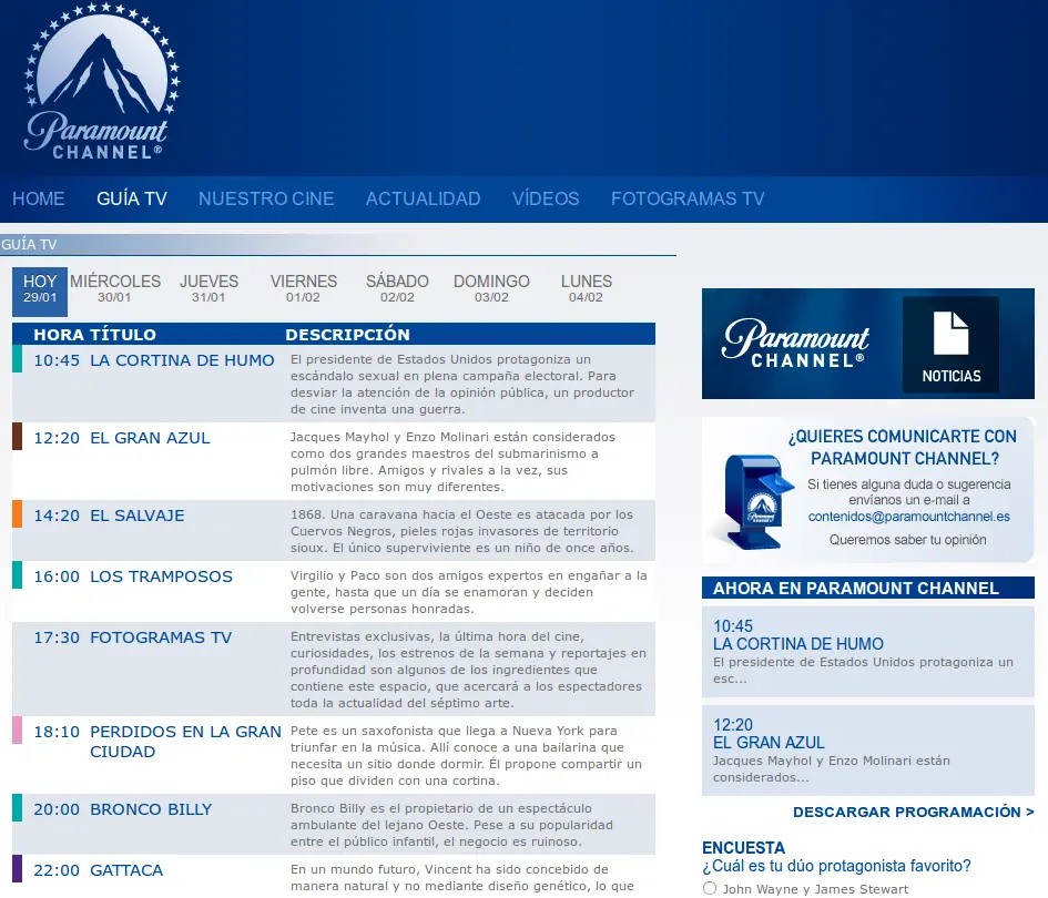Y entre varias páginas hay la siguiente : http://www.paramountchannel.es/guia-tv/