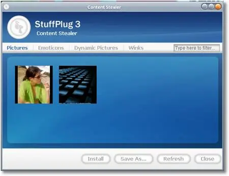 9. Es cierto que se pueden robar mi imagen para mostrar de MSN?: Sí, y no sólo eso. Partamos de la base que si realmente alquien quiere tener la imagen que mostramos por MSN sólo tiene que presionar la tecla Impr Pant (Print Screen) mientras tiene abierta una ventana de charla con el contacto en cuestion (de esta forma captura toda la pantalla al portapapeles; luego puede usar cualquier soft de edición de imágenes para recortar la imagen y guardarla), pero también existen programas que permiten automatizar el almacenado de cada imagen nueva que aparezca en nuestra lista de contactos. Una de las herramientas que permiten hacer eso es StuffPlug, un add-on para el messenger que entre otras cosas roba automáticamente las imágenes de los contactos (incluyendo las animadas), así como también cualquier emoticon personalizado o guiño que un contacto nos envíe.