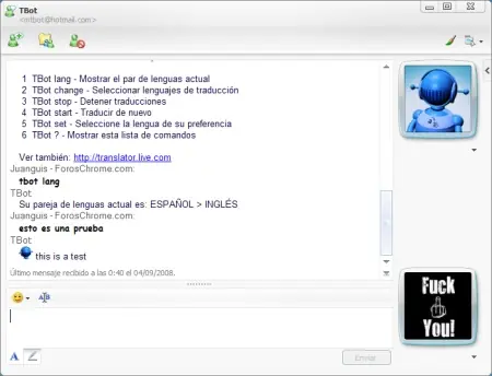 Microsoft anunció hace unos días la disponibilidad de un nuevo bot traductor para Windows Live Messenger, con él puedes traducir palabras sueltas, frases completas, o bien chatear con cualquier contacto teniendo al traductor como intermediario. Para instalarlo tenemos que agregar la siguiente dirección como contacto a nuestro mensajero: mtbot@hotmail.com.