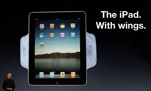 Cortesia de mi amigo Lokaso, encuentro esta imagen, donde podemos ver un iPad con alas O.O o sea, como una toallita femenina, esto se debe a que en el '' mundo anglosajon'' Pad seria algo como '' tampones '' por lo tanto la burla que se le esta haciendo se llama '' iPad con Alas ''