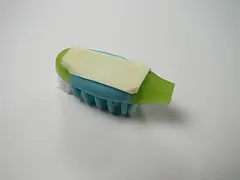 Para comenzar se necesita un cepillo que tenga más o menos uniformemente los ángulos de las cerdas. Si las cerdas no esta uniformes, se puede utilizar una tijeras para arreglar esto. A continuación cortar el mango del cepillo de dientes. Aplicar una pequeña pieza de cinta o pegamento en la parte superior de la del cepillo, donde se colocará el motor y la batería. Llevar una de las patillas del motor hacia la cinta, para que quede firme, luego colocar la batería y para finalizar doblar la segunda patilla sobre la batería para cerrar el circuito.