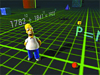 A través de una discontinuidad en el espacio tiempo, Homero pasa a la tercera dimensión (él es un dibujo de dos dimensiones). El universo 3D aparece como un escenario de la película Tron, rodeado de figuras geométricas y fórmulas matemáticas. Una de esas fórmulas es 178212 + 184112 = 192212 que, de ser cierta, violaría el Ultimo Teorema de Fermat, demostrado en 1995, tres siglos después de ser enunciado. En realidad, la igualdad es aproximada: hay una diferencia a partir de la décima cifra significativa. Este “contraejemplo” fue obtenido con un programa escrito por David Cohen, guionista de Los Simpson y master en Computación por la Universidad de Berkeley.