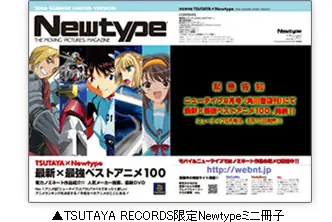 Tsutaya y la famosa revista Newtype colaboraron en crear una encuesta de los 100 mejores animes con votos tomados de los fans de esta publicación… Los primeros 10 lugares fueron impresos en la revista de este mes y los siguientes colocados en internet..