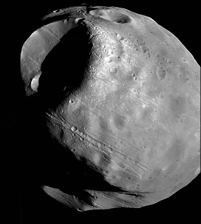 Fobos, la mayor de las dos lunas de Marte (Deimos es la otra), es un enigmático satélite: Los científicos no están seguros de cómo se formó, o de dónde procede el material.