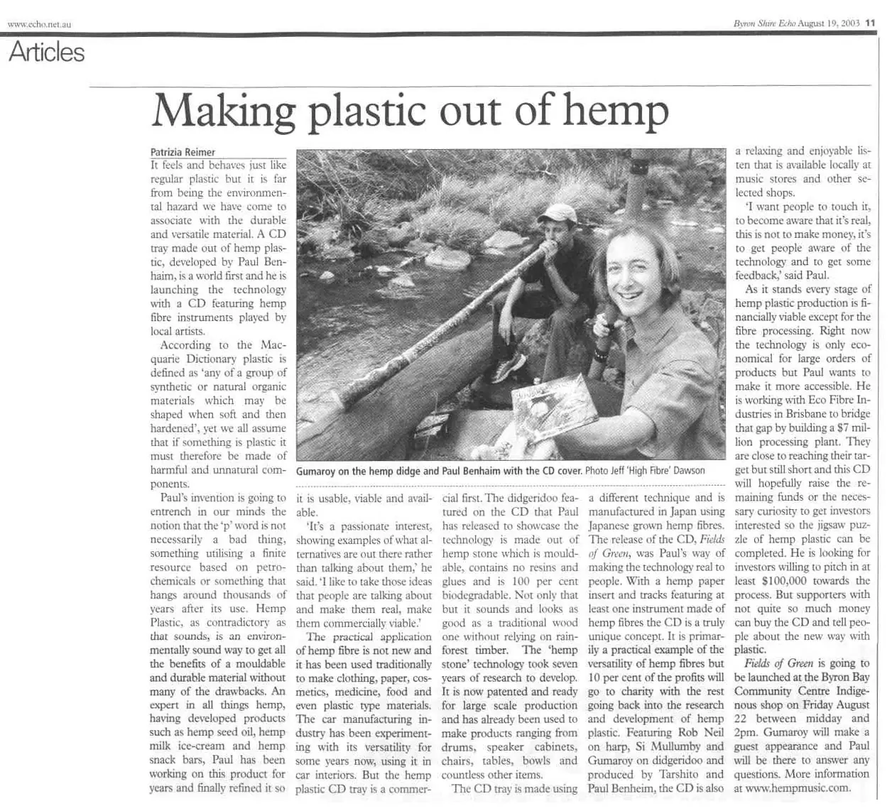 CD HECHOS TOTALMENTE CON CAÑAMO, LES PASO LA NOTA DEL DIARIO (www.hempmusic.com)