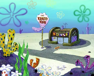 Así que si algún día pleaneas disfrutar una suculenta y jugosa hamburguesa en el fondo del mar, no pienses más y ve al Krustaceo Krujiente pra saborear semejante manjar.