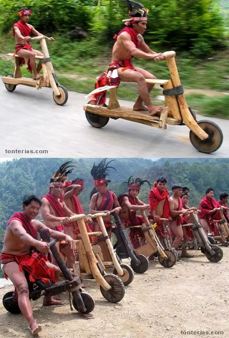 Una tribu de indios sudamericanos se ha fabricado unas estupendas motos de madera.
