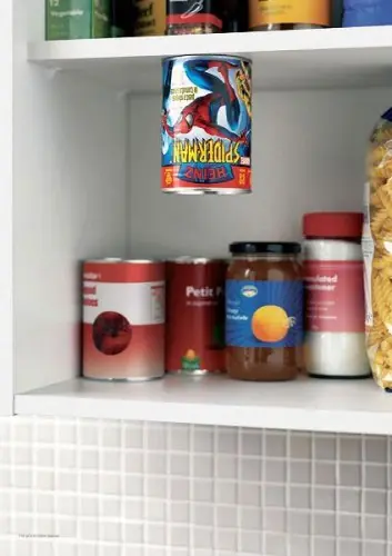 Como no podria ser de otra forma, la lata spiderman esta pegada al techo del armario
