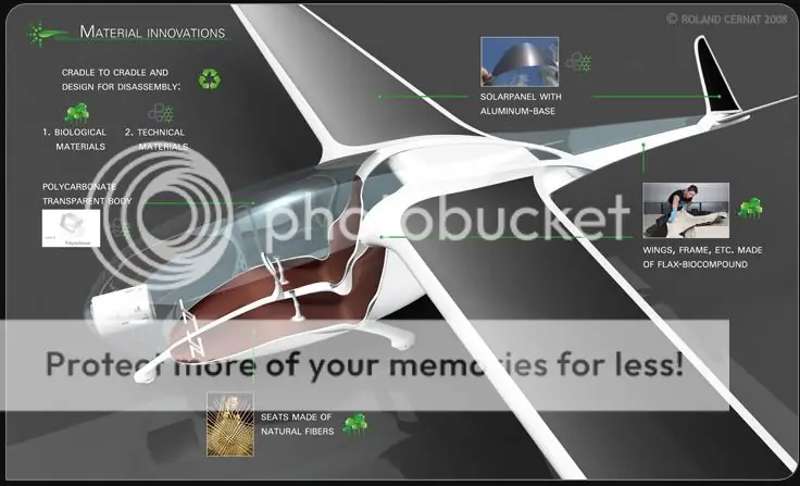 El avión está diseñado con la filosofía “de la cuna a la cuna”; todas las partes del producto pueden separarse y rser ecicladas. Aquí más detalles técnicos.