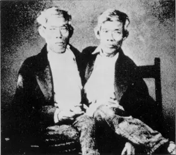 Chang y Eng Bunker (1811-1874) fueron los dos hermanos que compartieron el mismo cuerpo, nacieron en Makiong, Siam (actual Tailandia). Debido a su lugar de origen hoy se llama siameses a las personas aquejadas por esta malformación genética.