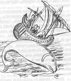 En un episodio los monjes celebraron una misa de resurrección en una isla que resultó ser una ballena, y ahí nació la leyenda de la isla errante en las aguas del Océano Atlántico.
