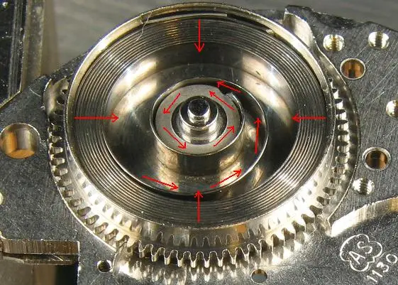 Bien, supongamos que lo tomamos de nuestro cajón para llevarlo con nosotros durante un día cotidiano, pues la primera acción a realizar es darle cuerda para que el movimiento comience su marcha, cuando ejercemos esta acción tan simple de primera vista, los resultados al interior del reloj son diversos, todo aprovechando un principio sencillo de obtener energía através de la manipulación correcta de un componente metálico con ciertas características en su composición, diseño, alojamiento y demás, este componente es el muelle real, el que básicamente provee de energía a estos antiguos movimientos, pero más adelante detallaremos este aspecto. Entonces, cuando damos cuerda a nuestro reloj, esto es lo que sucede dentro de él: