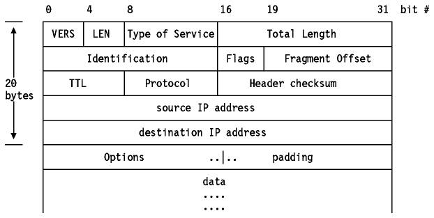 La cabecera del datagrama IP es de un mínimo de 20 bytes de longitud: