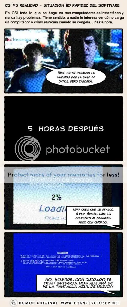 Nunca se han puesto a pensar cómo sería la serie CSI si estuviera un poco más sujeta a la realidad? Qué pasaría si la tecnología que usan los tratase como a todos nosotros? O si todos sus diálogos no estuvieran guionados para que sean tan ingeniosos? Pues éste es el resultado