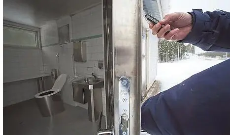 Sólo en los países civilizados como Finlandia suceden cosas como esta. Urinarios públicos cuya puerta sólo se abre tras enviar un SMS con la palabra “ABRIR” (en finlandés, claro)