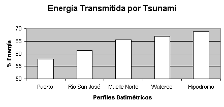 El estudio batimétrico concluye, que la energía transmitida por la onda de tsunami se traspasa casi en un 100% desde los 10 km hasta 2 km mar adentro frente a la ciudad de Arica. Apareciendo graduales efectos de roce del fondo marino desde los 2000 m hasta la línea de costa. De este modo, se evidencia que la plataforma continental se presenta como una rampa que potencia el traspaso de energía de la onda de tsunami.