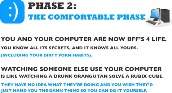 * Tu y tu computadora son ahora BFF’s (Mejores amigos por siempre) de Por Vida. Conoces todos sus secretos, y tú conoces los suyos. (incluyendo tus sucios hábitos porno).