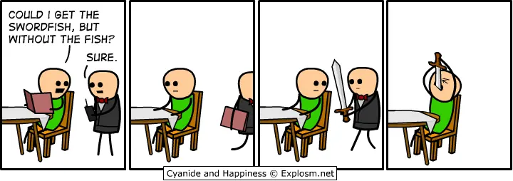 -¿Podría traerme el pez espada, sin el pez?