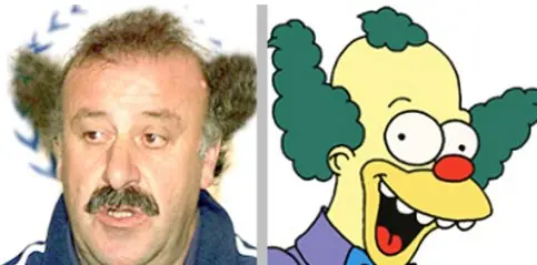 El ex entrenador del Real Madrid Vicente del Bosque nos recuerda al increible payaso Krusty de la serie de dibujos animados de Los Simpson. Jejeje jejejé!! Jejeje jejejé!!