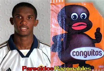 El jugador de fubtol Eto\'o nos recuerda a una bolsa de deliciosos conguitos, cacahuetes cubiertos con una capa de riquísimo chocolate mmmm