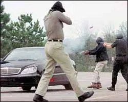 13. Los coches explotan de forma instantánea en cuanto les da una bala.