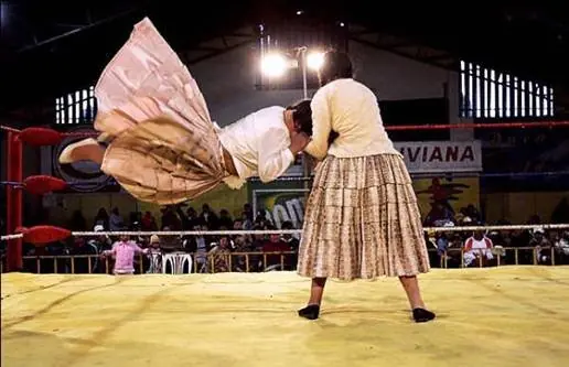 Si el box es el deporte de reyes: Las cholitas peleadoras o como se pone aqui para atraer turistas "cholitas wrestling" son el deporte del pueblo.