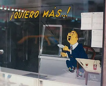 Estos son los famosos muñequitos de los carteles que vemos dia a dia en la calle en los negocios y comercios de nuestro barrio... ¿en que pensaban los dibujantes o en que pensaron los dueños que aceptaron que hagan estas "obras de artes" para incentivar las ventas de su negocio???