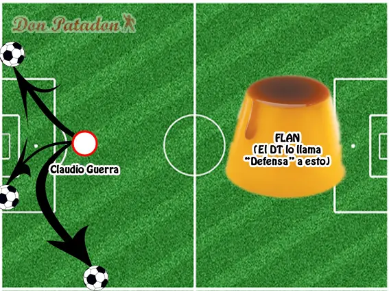 En este sistema hay solamente hay dos falencias, una es la defensa y la otra se llama Claudio Guerra. El entrenador del equipo tiene la terquedad de llamar “Defensa” aun grupo de tipos alineados uno al lado del otro y temblando como un flan frente a cada ataque rival. La premisa más importante de este esquema es que no hay esquema. Los jugadores salen a la cancha mucho mas desilusionados que Maxi López al enterarse que Wanda Nara no era virgen. Lo mas vistoso de esta variante estratégica es el disfrutar de cómo Claudio Guerra se erra goles casi imposibles. Mientras la defensa reza un Padre Nuestro para que que los rivales no ataquen.