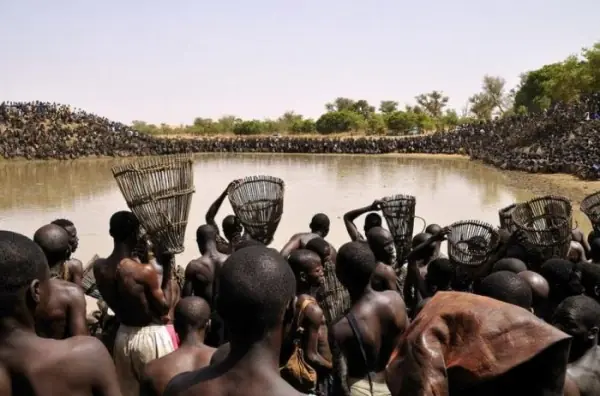 A los aborigenes de Mali solo les esta permitido pescar en el lago sagrado de Antogo una vez al año… Y esto es lo que ocurre.