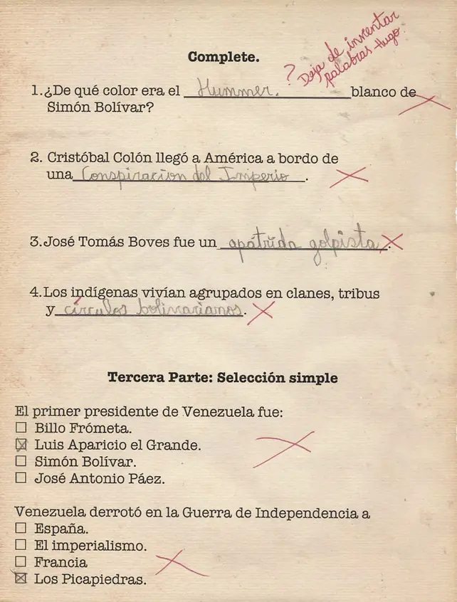 Que escándalo lo de wikileaks… Hay de todo en estos documentos. Incluso este exámen de hugo Chávez de cuando estudiaba 3er grado. Ya se veía por donde iba…