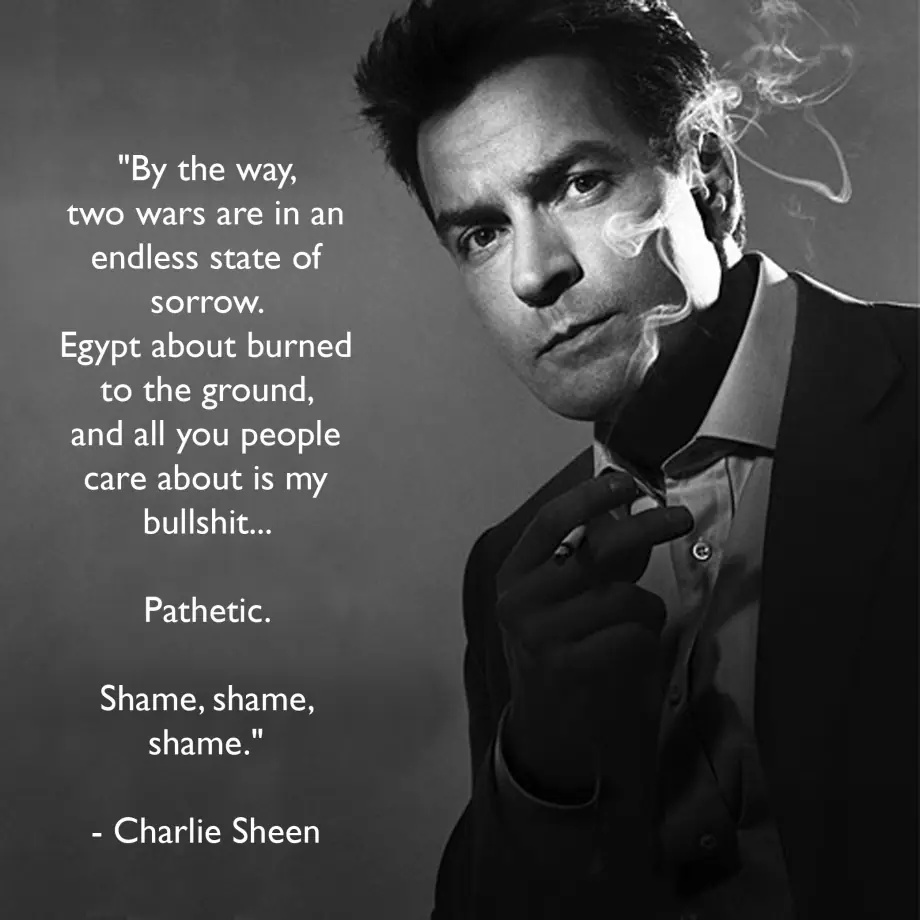 Por cierto, dos guerras estan en un estado de lamentable tristeza, Egipto cerca de la destruccion, y ustedes se preocupan por mi mierda.