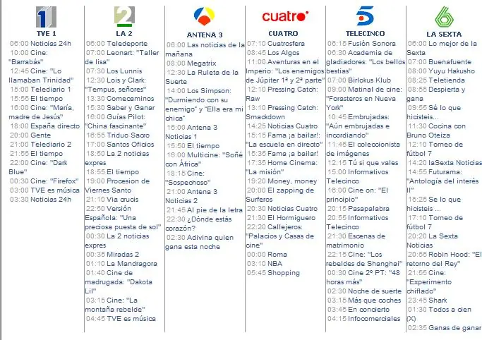 y nos conoceríamos toda la programación desde las 7:30 hasta las 24:30 de todos los canales