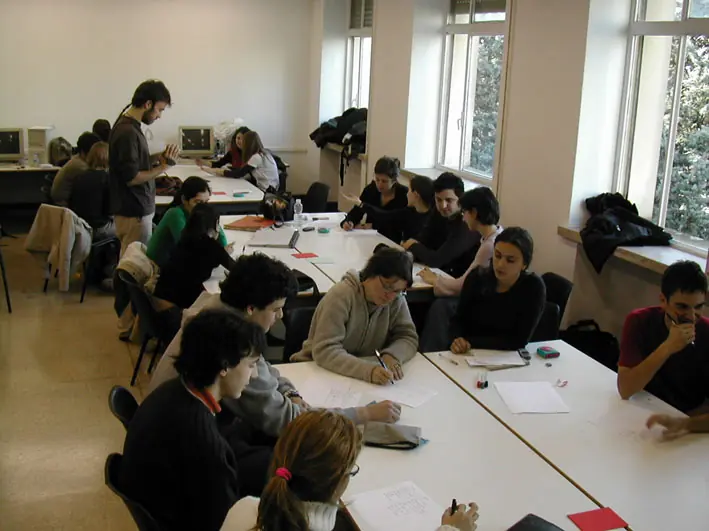 En el aula... te pones a hablar con tu compañero de al lado y los de enfreente , preparas la estrategia para tirarle cosas a los de la otra fila .. la profesora te pone un 1 ( alguna que otra vez le pone un 1 al que no hizo nada , y te hace cagar de risa como nunca )..... Nunca falta que el sucio del aula se tire un pedo y algunos se caguen de risa , pero vos te tenes que comer todo el olor.