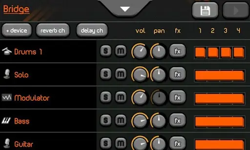 Aquí nos encontramos un poderoso secuenciador multi-instrumento. Esta app nos ofrece la posibilidad de programar nuestros loops de batería, bajo y sintetizadores en la palma de nuestra mano. Soporta hasta doce canales y cuatro compases. Incluye efectos (Delay, Flanger, Chorus y Compresor), ecualizador de tres bandas con paramétricos por canal. Una auténtica joya dentro de las aplicaciones para smartphones.