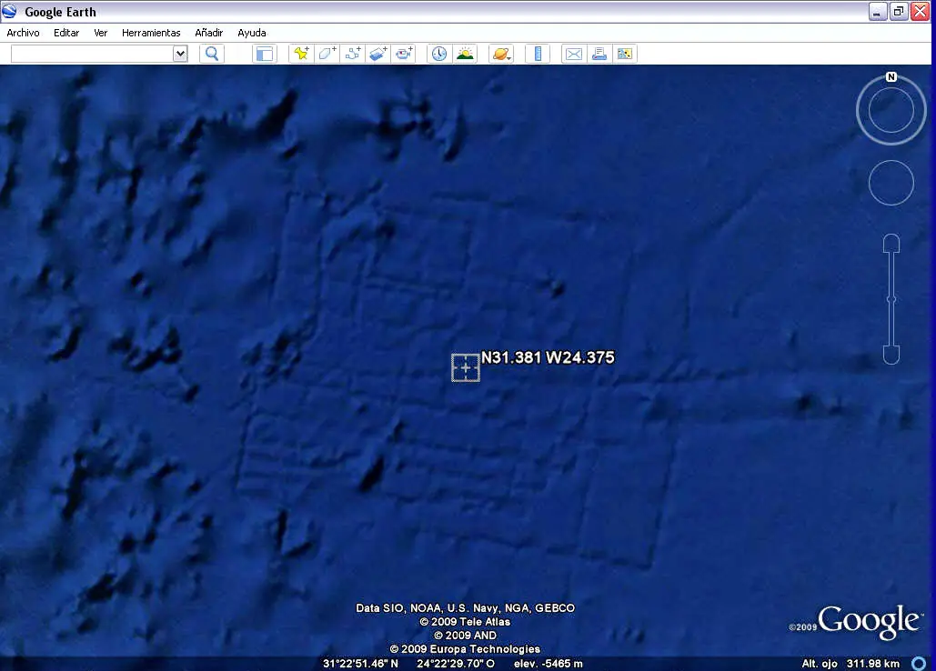 Lo primero que sorprende es que si buscamos en Google Earth la localización siguiente nos aparece la estructura de Bimini claramente organizada de manera geométrica.