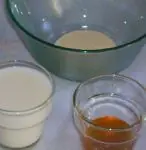 Colocamos en un bol pequeño la levadura, el azúcar, la harina y la leche tibia.