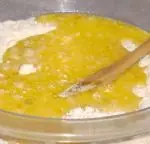 Ahora agregamos a los ingredientes secos los húmedos y por último le agregamos la levadura.