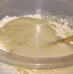 Revolvemos con espátula hasta integrar todos los elementos y lo tapamos con un paño. Luego lo dejamos levar en un lugar que esté fuera del alcance de corrientes de aire. El levado demorará aproximadamente 15 minutos.