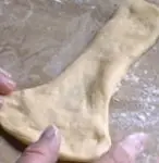 Ya pronta la masa, la estiramos con el palo de amasar formando un rectángulo de unos 20cm de ancho.