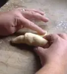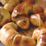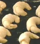 Como se ve en la foto, torcemos las puntas del rollo hacia adentro, para dar la forma característica. Vamos colocando las medialunas armadas sobre una asadera previamente aceitada.