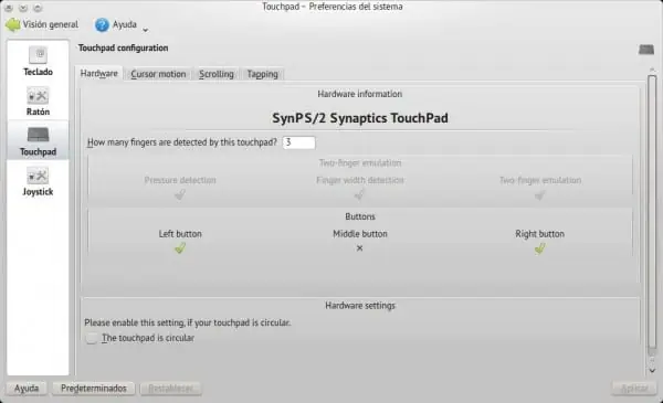 Incluso instalé el paquete gsynaptics el cual se integra muy bien con el Centro de Control, pero no encontré en él nada que me sirviera