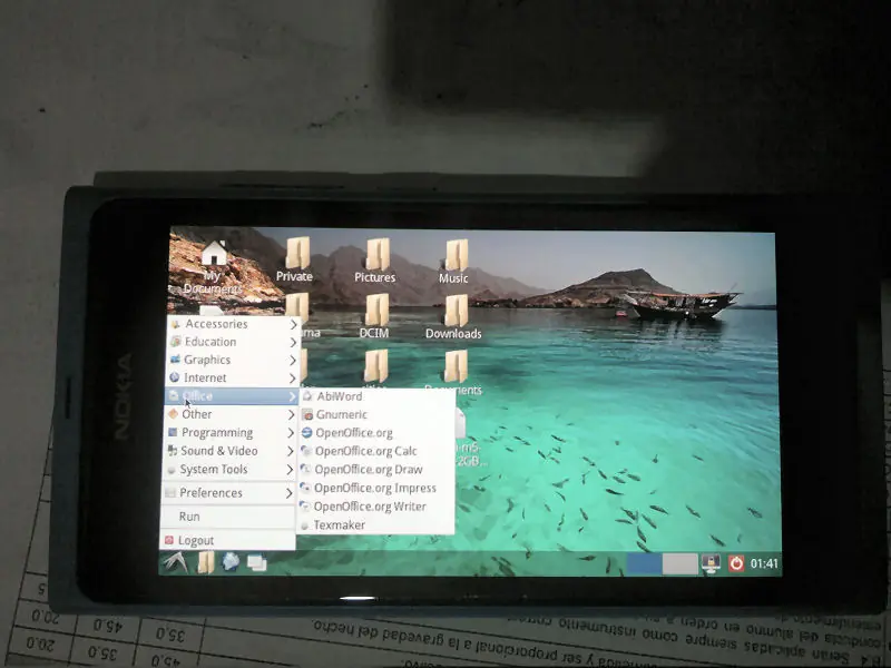 De qué se trata en concreto? Bueno, tal y como lo dice el título, podés correr una distro de linux completa en tu Nokia N9, más precisamente Debian con el entorno LXDE, e instalar y ejecutar en ella los mismos programas que en tu pc de escritorio: navegar por la web con iceweasel, administrar tu correo con Icedove, editar documentos con openoffice.org, reproducir mp3s, editar imágenes con gimp, bajar archivos con JDownloader... y todo lo que se te ocurra... Todo ello con un rendimiento impresionante (No miento si te digo que anda tan rápido y fluido como en mi pc de escritorio)