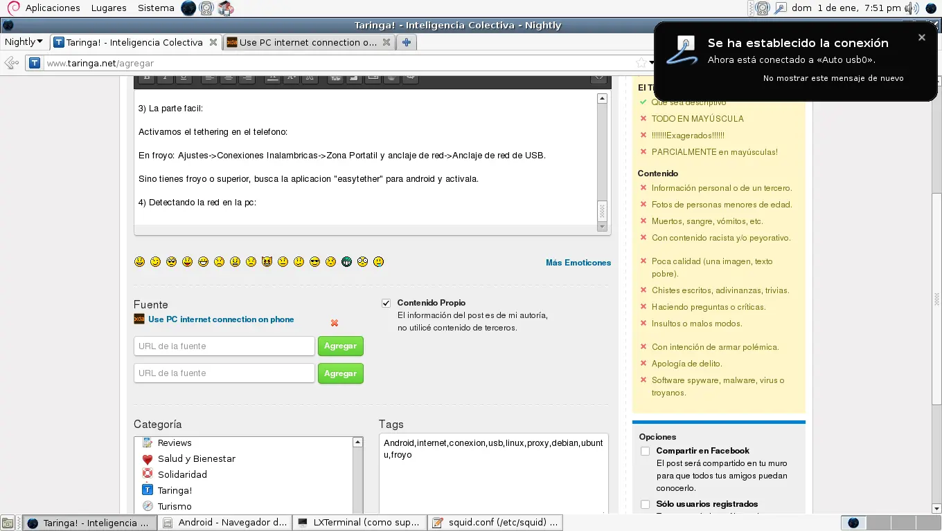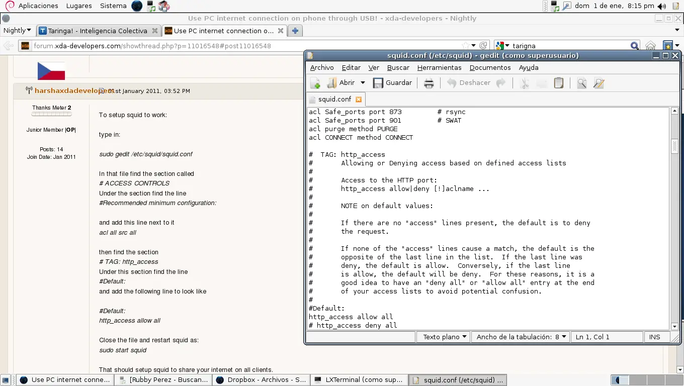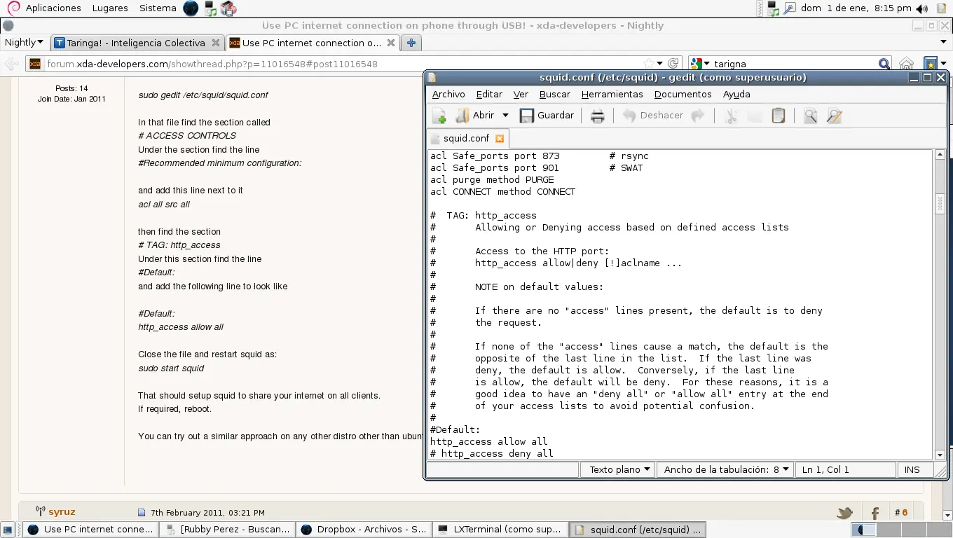 Reiniciamos la pc, ya tenemos el servidor proxy configurado y andando.