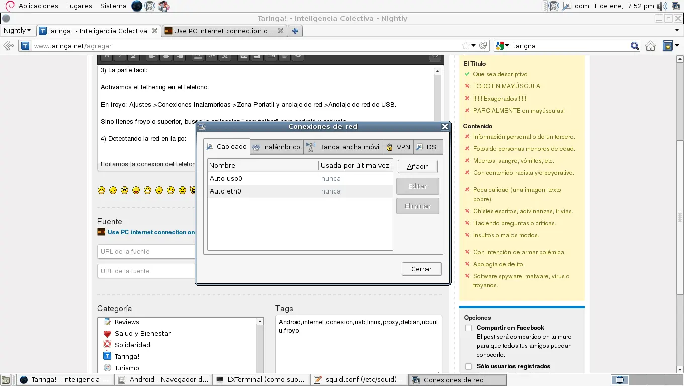 Buenas amigos taringeros, aqui les traigo una manera relativamente sencilla de conectarte a internet si no tienes acceso a un router o tienes la cantidad de direcciones IP limitadas asi como yo (tampoco tengo router