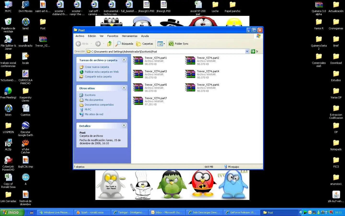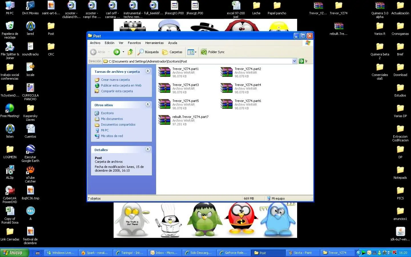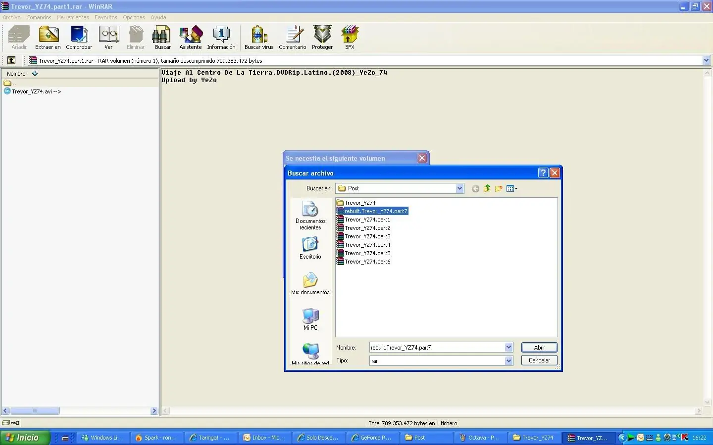 Septimo. Entonces tendremos 2 archivos rar. con el numero 7 (en este caso) lo que hacemos es que dejamos el archivo que diga rebuilt y sacamos el otro archivo que nos daba problema, nos tienen que quedar los archivos como en la imagen.