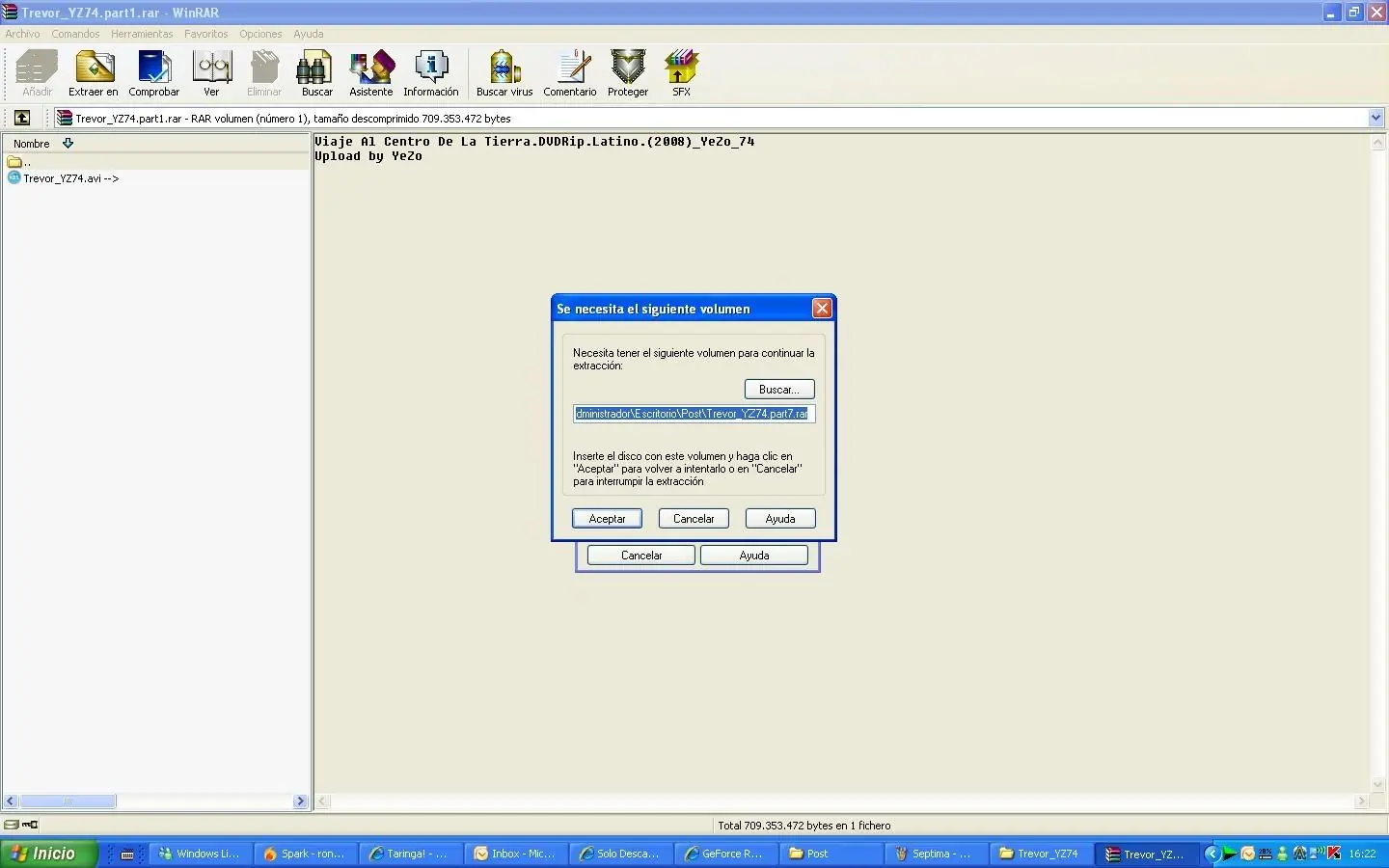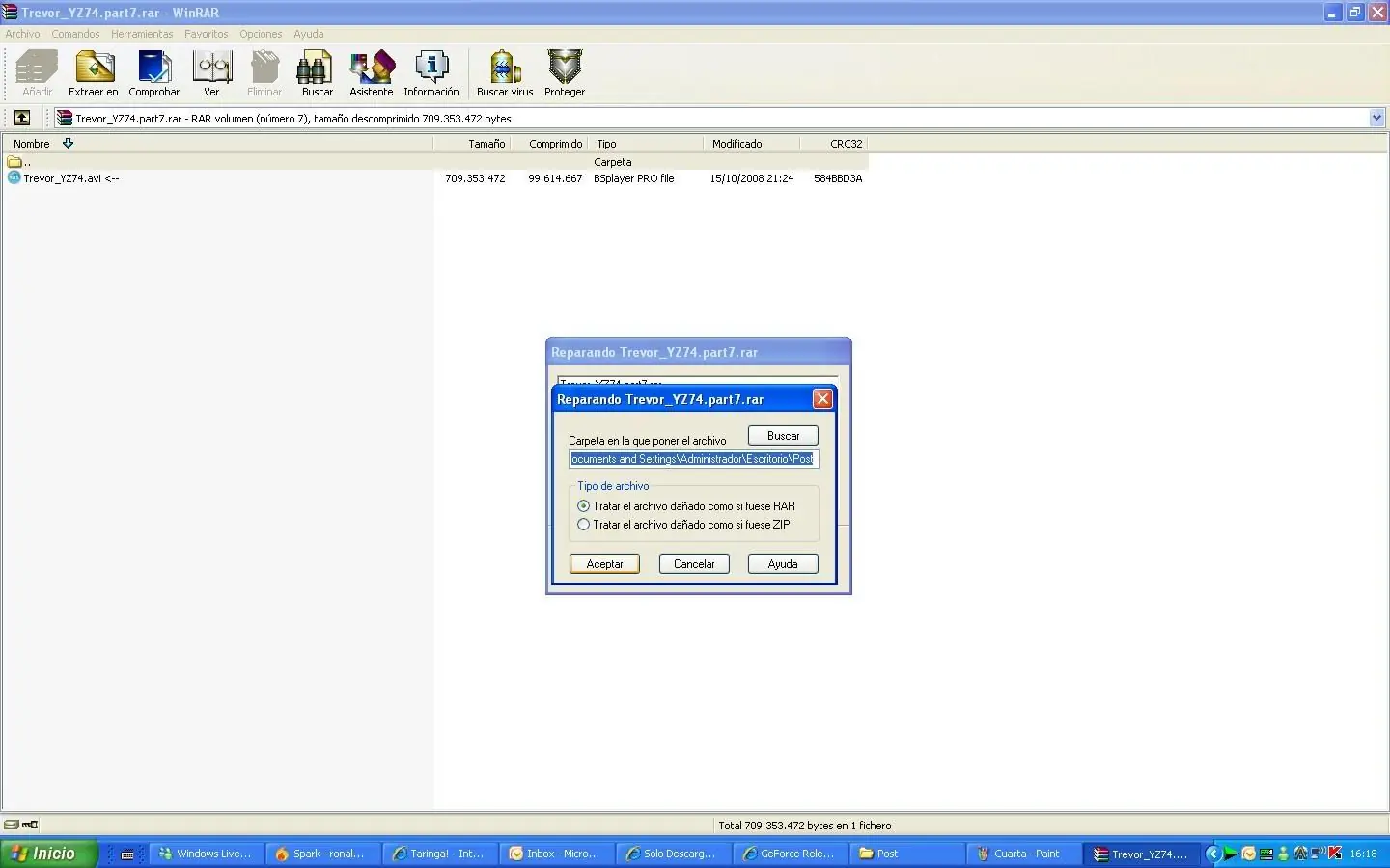 Octavo. De ahi le damos el procedimiento normal, otra vez extraemos todo desde el archivo 1, asi pasara por todos los archivos; pero cuando llegue al 7, como no tiene el mismo nombre (No cambien el nombre del archivo, dejenlo como aparece cuando sale reparado) le damos buscar, y seleccionamos el archivo reparado y le damos aceptar.