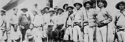 Augusto C. Sandino (al centro) con Francisco Estrada, Santos López, Juan Pablo Umanzor, y Sócrates Sandino