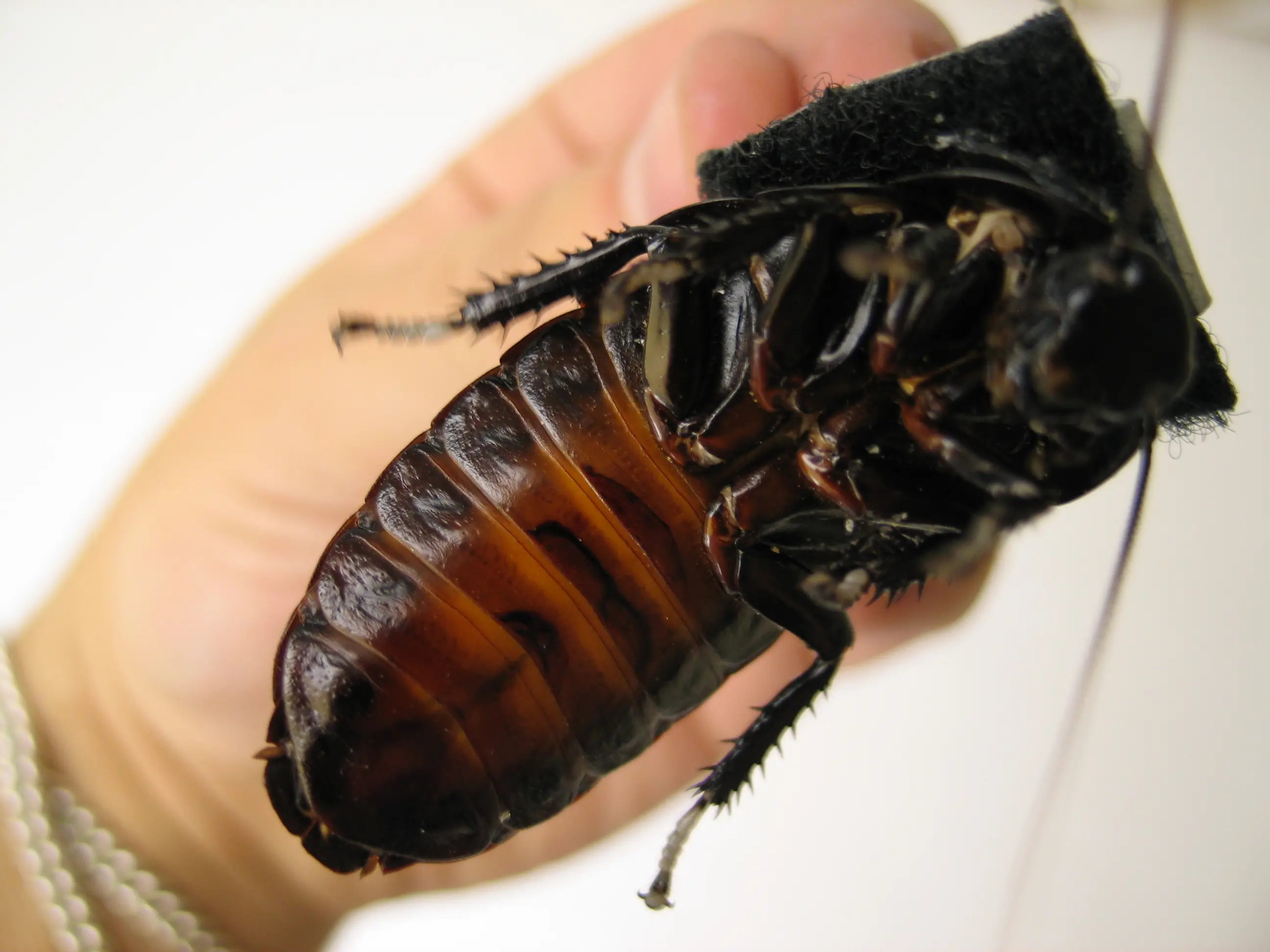 Para sujetar a la cucaracha utilizan un poco de velcro en la cutícula de su espalda, la cual no tiene suistemas nerviosos y es realmente resistente, asi que la cucaracha no es lastimada.